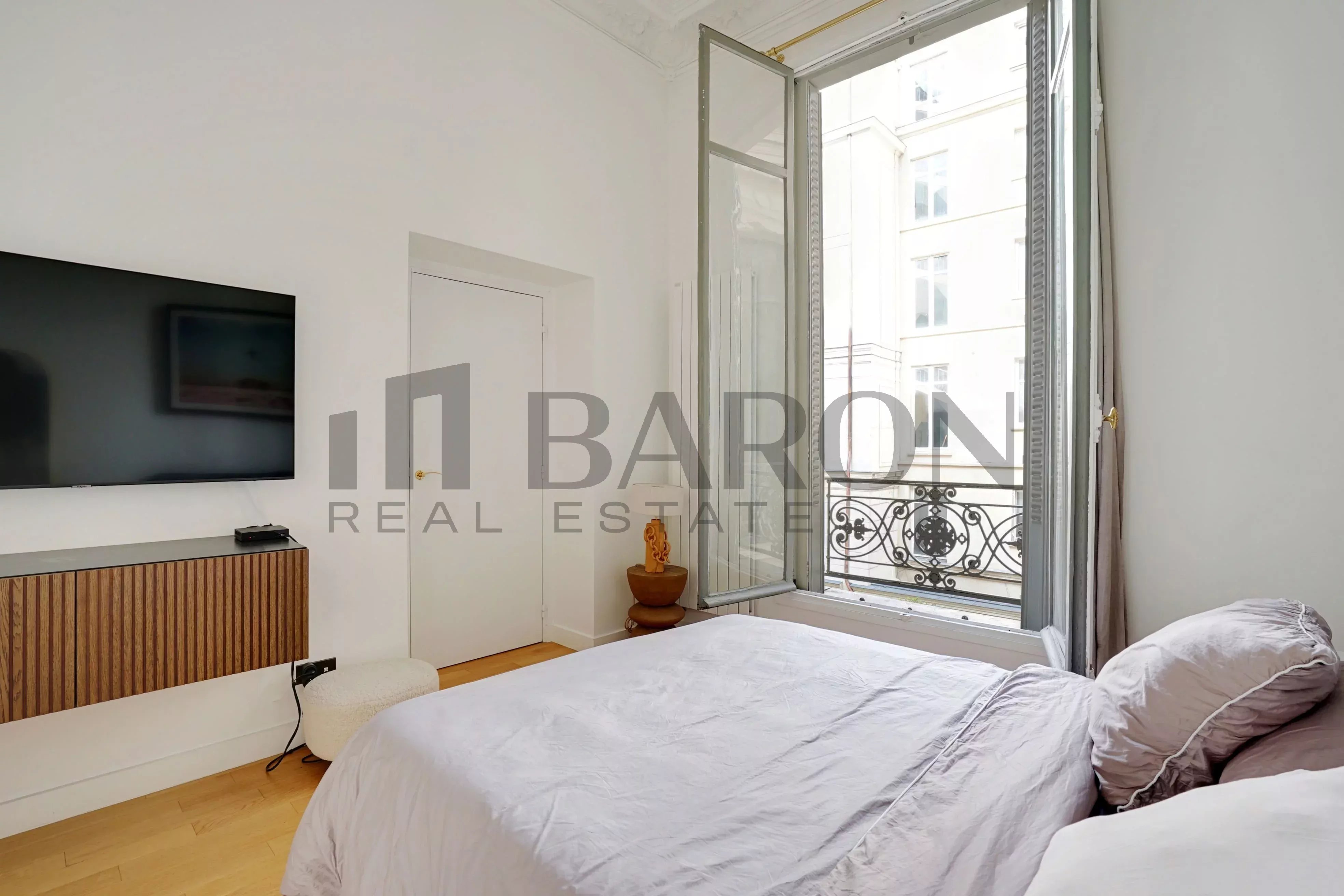 Idéalement situé, au coeur de la Plaine Monceau, entre la rue de Courcelles et le Parc Monceau, au pied des commodités (transports, commerces), dans un immeuble ancien d'excellent standing réhabilité il y a 4 ans avec gardien et ascenseur en demi-palier, au deuxième étage, l'agence BARON vous présente un magnifique appartement configuré en 2 pièces d'une surface de 35,5 m2.L'appartement en parfait état qui sera vendu intégralement meublé et équipé, se décrit comme suit :Une entrée sans perte d'espace donnant sur le séjour avec sa cuisine ouverte aménagée et équipée composée avec des matériaux de haute qualité, attenant à une chambre spacieuse comprenant des rangements sur mesures et donnant accès à une grande salle de douche avec douche à l'Italienne et un WC intégré. La hauteur sous plafond est à noter car elle culmine à 3,75 mètres ce qui donne une sensation de volume à l'appartement.Le bien donne intégralement sur une vaste cour arborée très au calme, ce qui est appréciable.L'appartement est en parfait état et est vendu meublé.